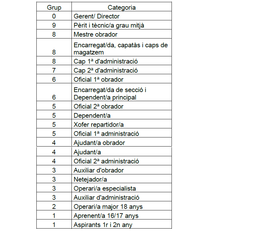 En quan a les definicions de les categories professionals, s’ha tingut com a referencia l’actual «Acuerdo Marco Estatal», amb les adaptacions pertinents.