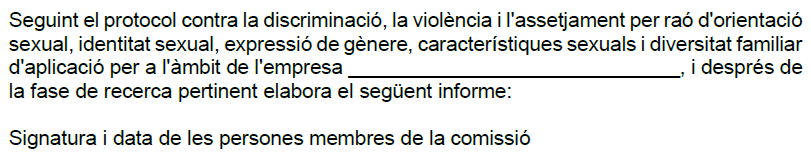 Fase 2. Investigació: La comissió emetrà un informe vinculant, després de la realització de les entrevistes o de les proves que es determinin, en un dels sentits següents: