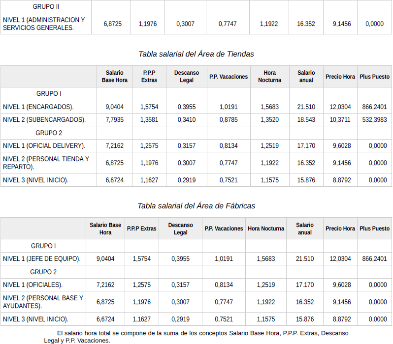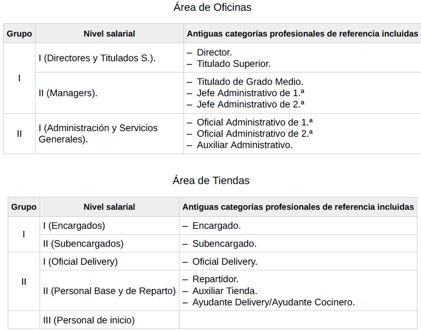 3. Que la mención «nivel salarial 1», la cual se corresponde al denominado «Oficial Delivery», en el texto del redactado trascrito es un error mecanográfico pues en puridad el redactado correcto y adecuado debía hacer una referencia al «nivel salarial 2» («Personal base y de reparto») pues las labores que desarrolla este nivel son las mismas que desarrollan los trabajadores adscritos inicialmente al «nivel salarial 3» y que al cabo de 8 meses de prestación de servicios en dicho nivel en la empresa automáticamente ascienden al citado «nivel salarial 2» de ese mismo grupo profesional.