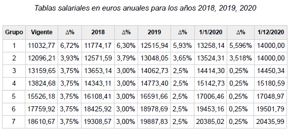 >> El «Anexo Tabla salarial del personal de estructura por niveles profesionales» corregido y definitivo sería el siguiente: