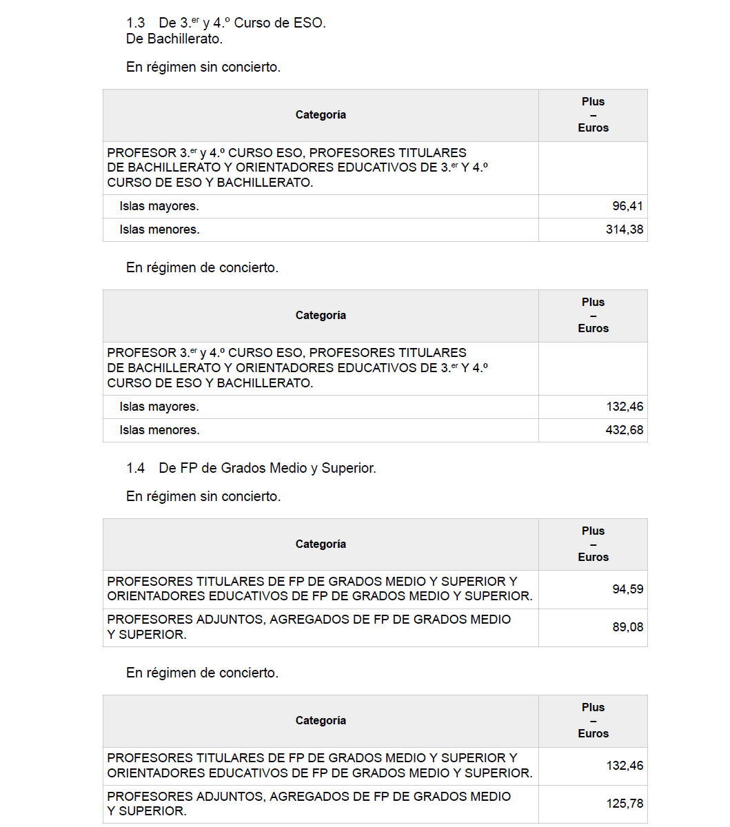 A tenor de este acuerdo, los centros concertados tienen que repercutir, anualmente y en la misma proporción, los incrementos previstos en los puntos 6.1 y 6.2 en el complemento retributivo de las Islas Baleares del personal de administración y servicios.