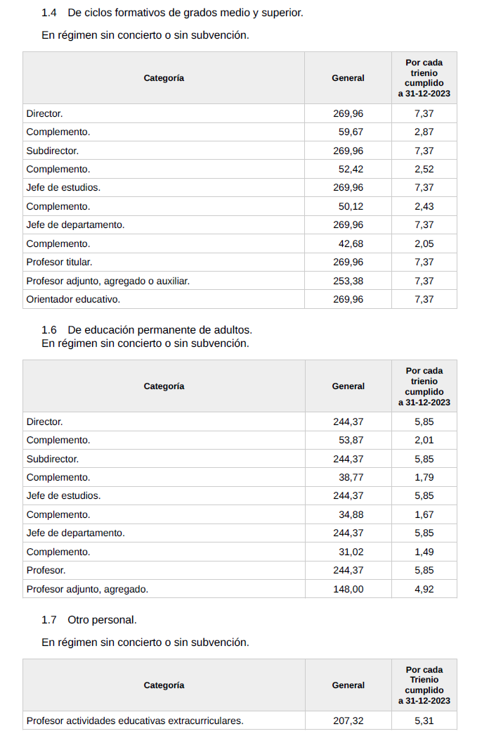 Resolución de 27 de enero de 2025, de la Dirección General de Trabajo, por la que se registran y publican las tablas salariales de 2024 y abono de paga única para el personal de niveles no concertados y personal de administración y servicios, complemento adicional temporal al personal de administración y servicios, y actualización del complemento de salidas con pernocta del VII Convenio colectivo de empresas de enseñanza privada sostenidas total o parcialmente con fondos públicos.