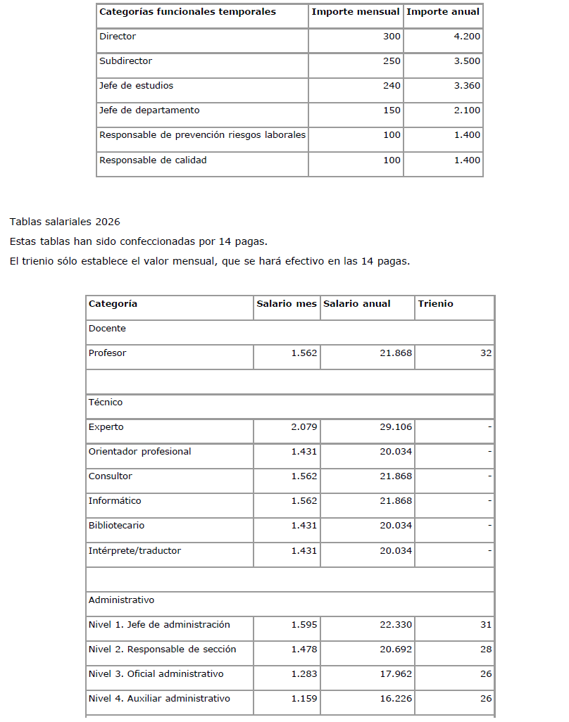 Las categorías funcionales temporales anteriormente mencionadas, así como su jornada y complemento salarial específico, se mantendrán mientras se desarrollen estas funciones.