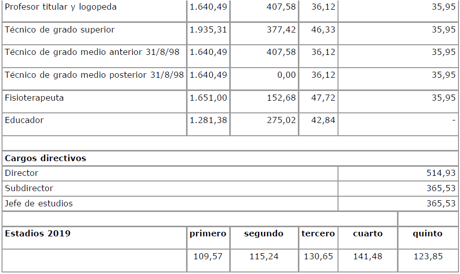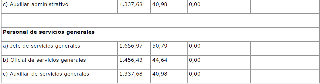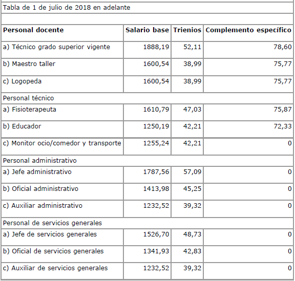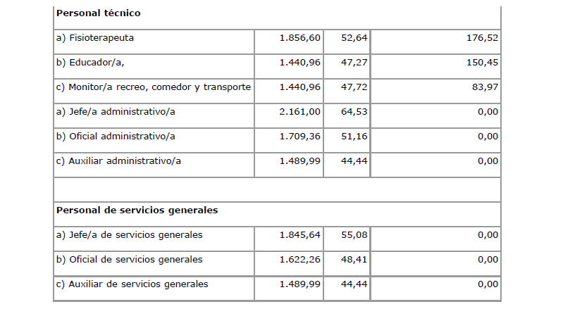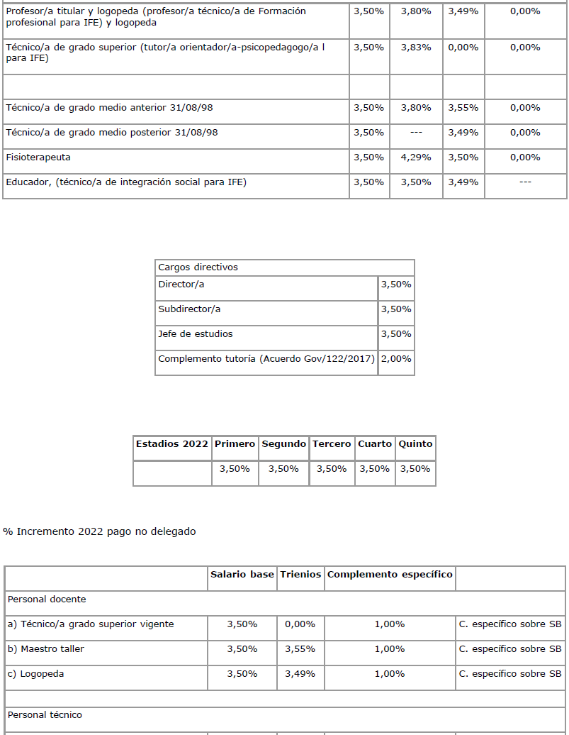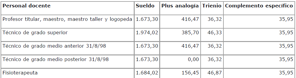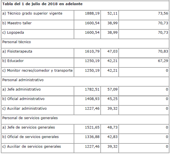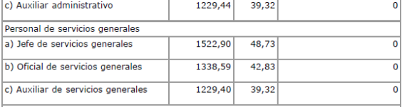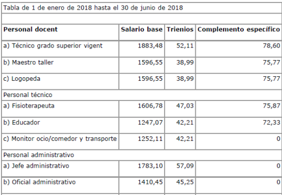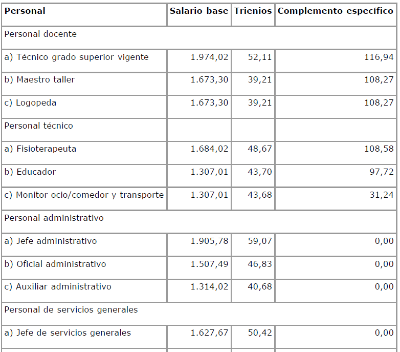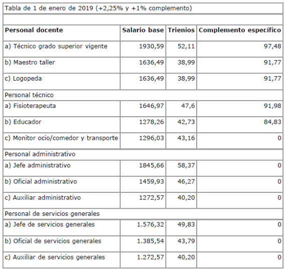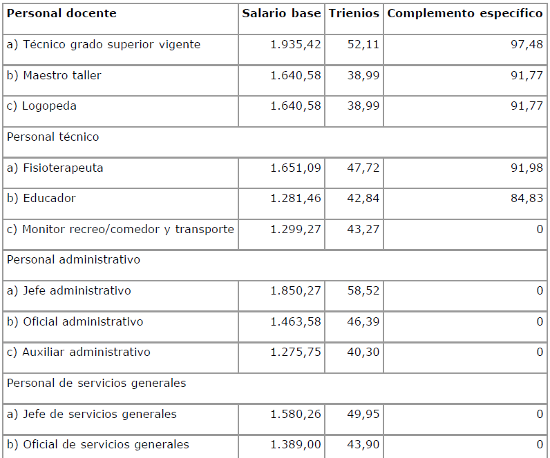 – Aumentar un 2% al salario base, más un 1% adicional del salario base en el complemento específico para aquellas categorías que lo tienen, y las que no, al mismo salario base.