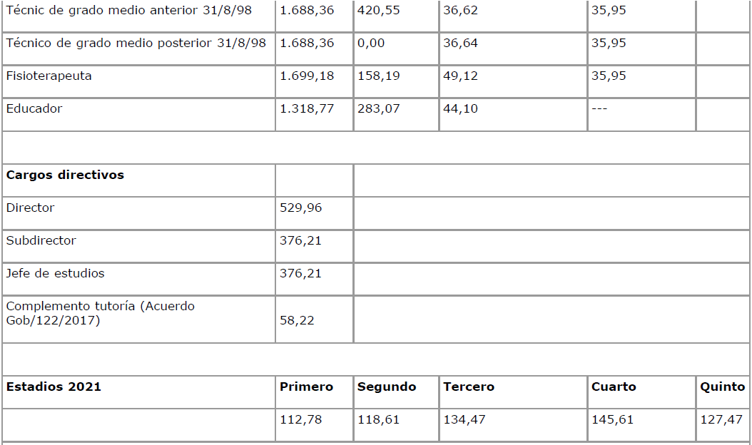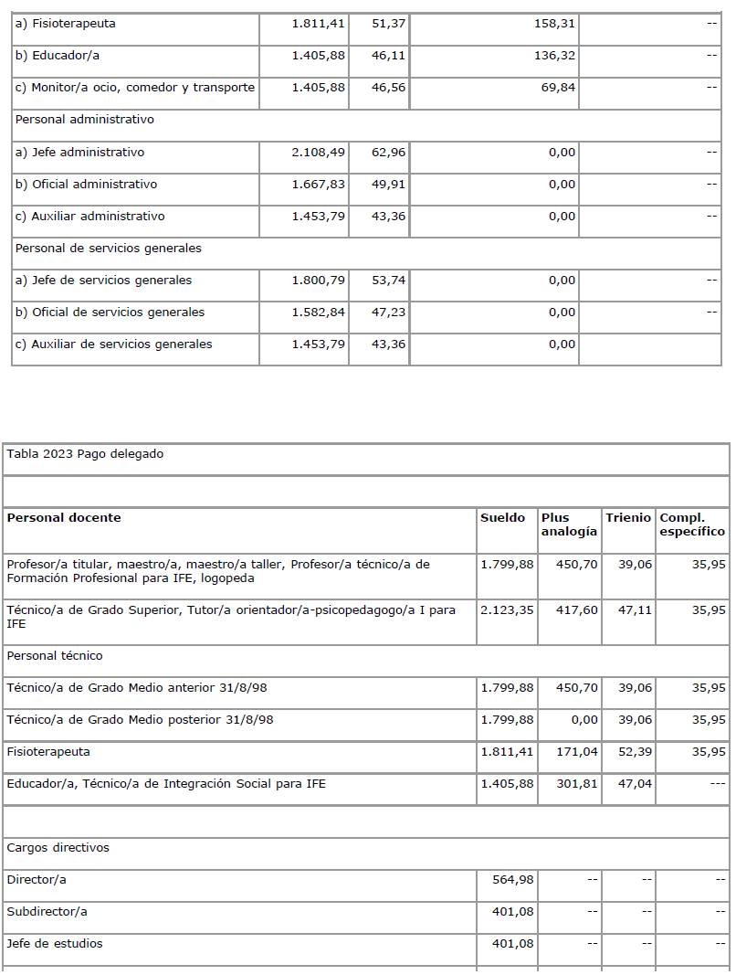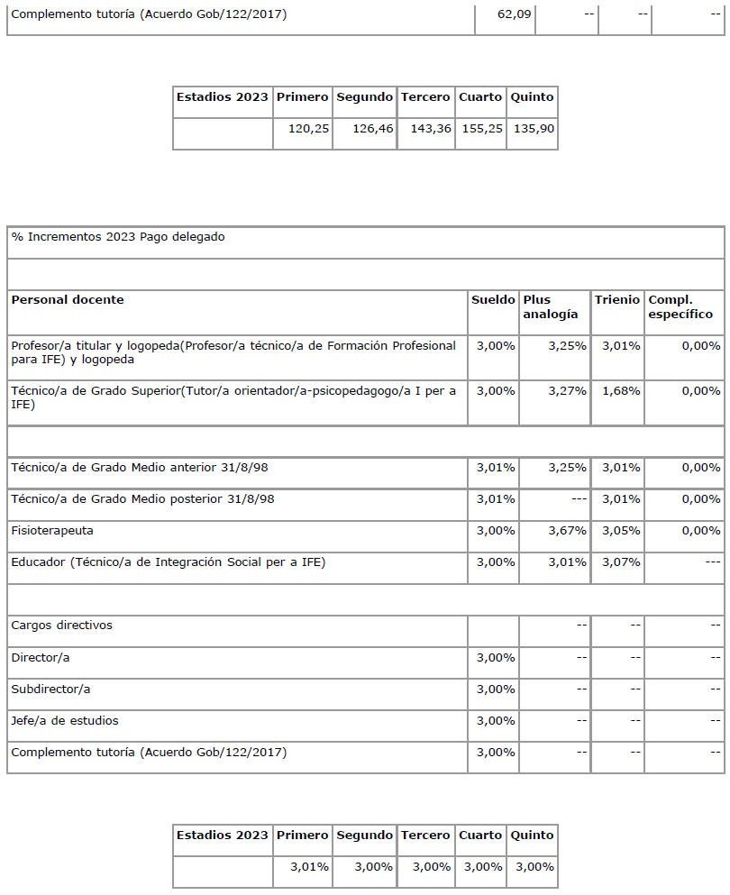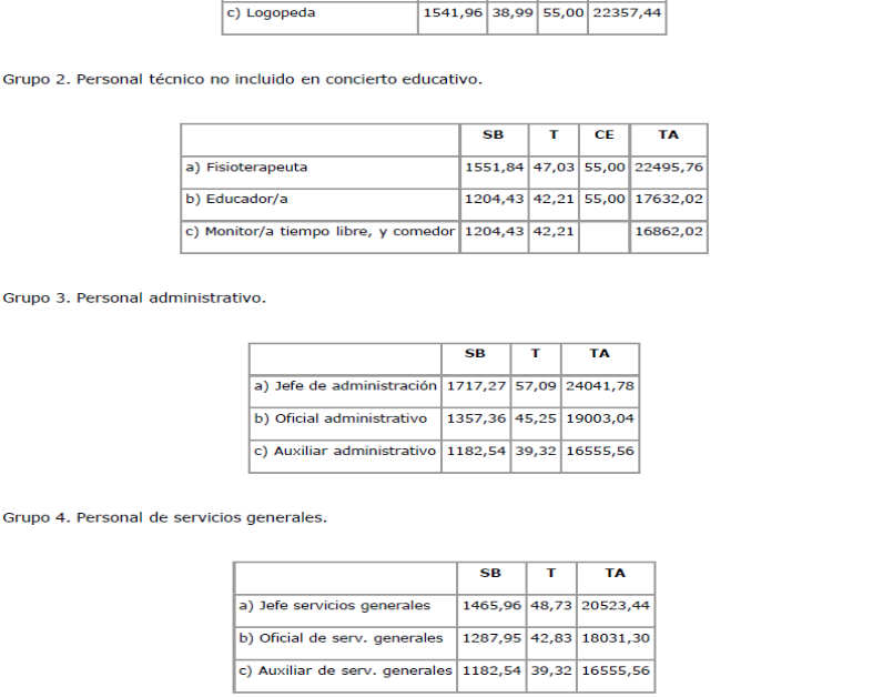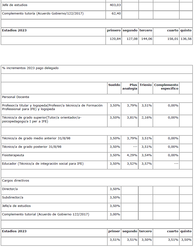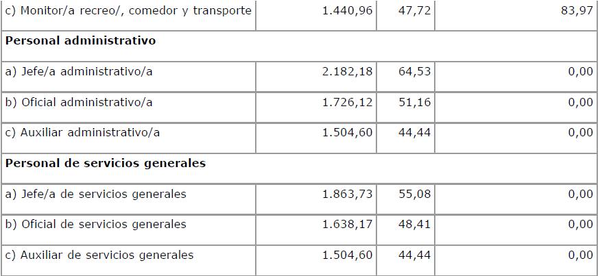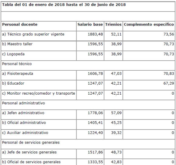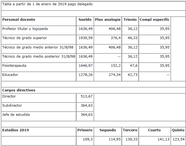 – Aumentar un 2% al salario base, más un 1% adicional del salario base en el complemento específico para aquellas categorías que lo tienen, y las que no, al mismo salario base.
