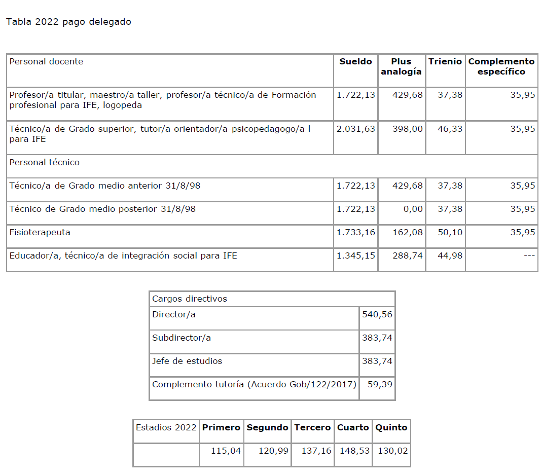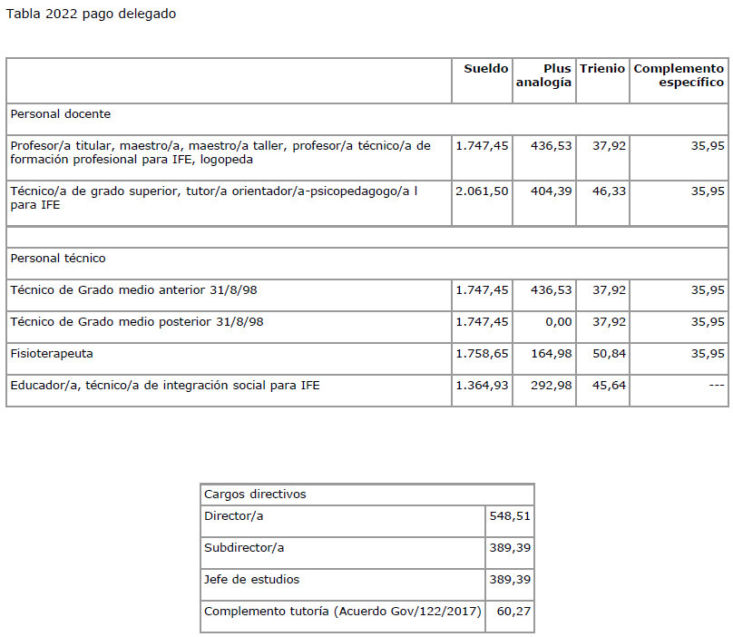 – Sobre los trienios, el equivalente a la misma categoría del pago delegado cuando es posible y la media cuando no hay equivalente.