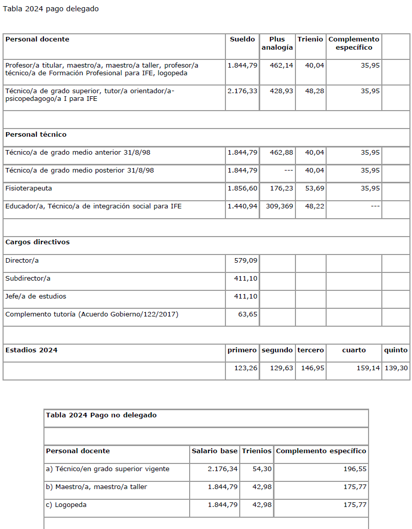Se adjuntan de nuevo las tablas salariales del 2024 firmadas, las cuales se anexan y se solicita publicar de nuevo tanto las tablas 2024 en pago delegado como las de pago no delegado.