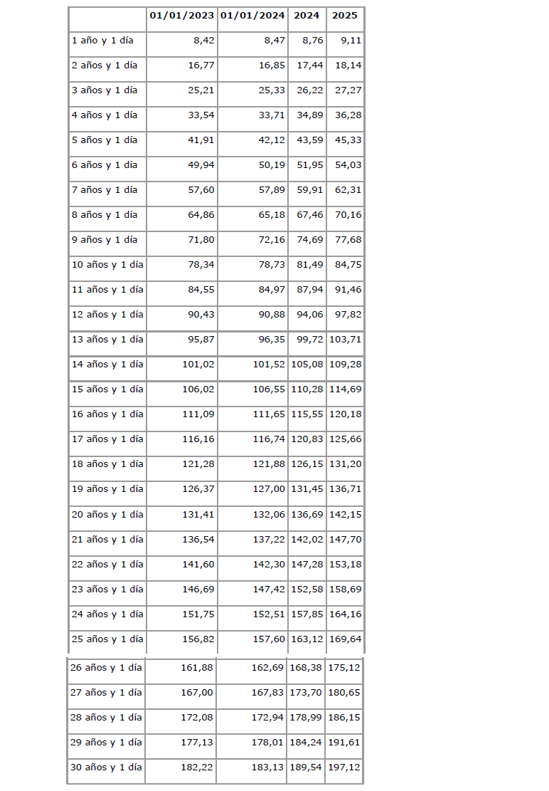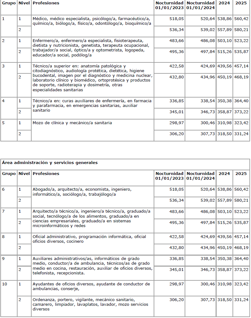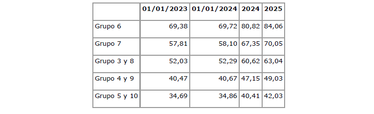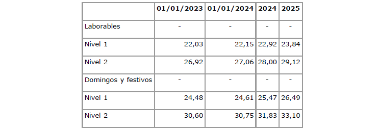 Los importes del año 2024 antes descritos se actualizarán en la nómina del mes de junio de 2024 y esta actualización se incorporará a las tablas salariales.