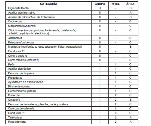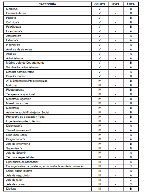 ANEXO II.- CUADRO DE ASIMILACIÓN DE CATEGORÍAS CON ÁREAS DE ACTIVIDAD.