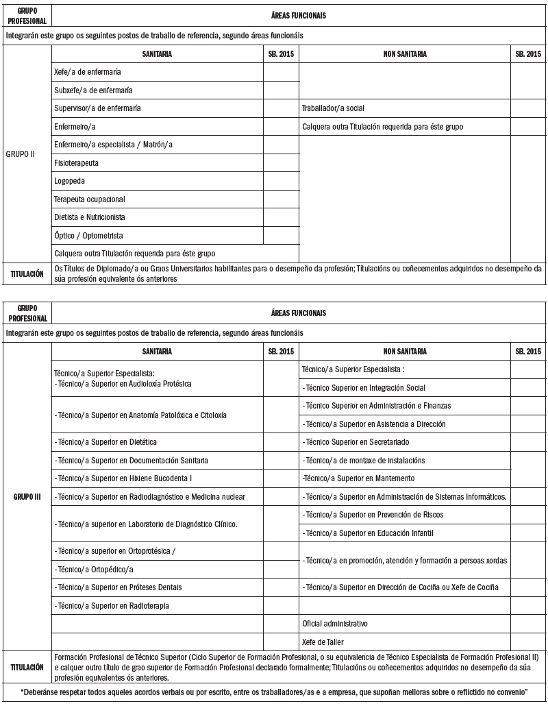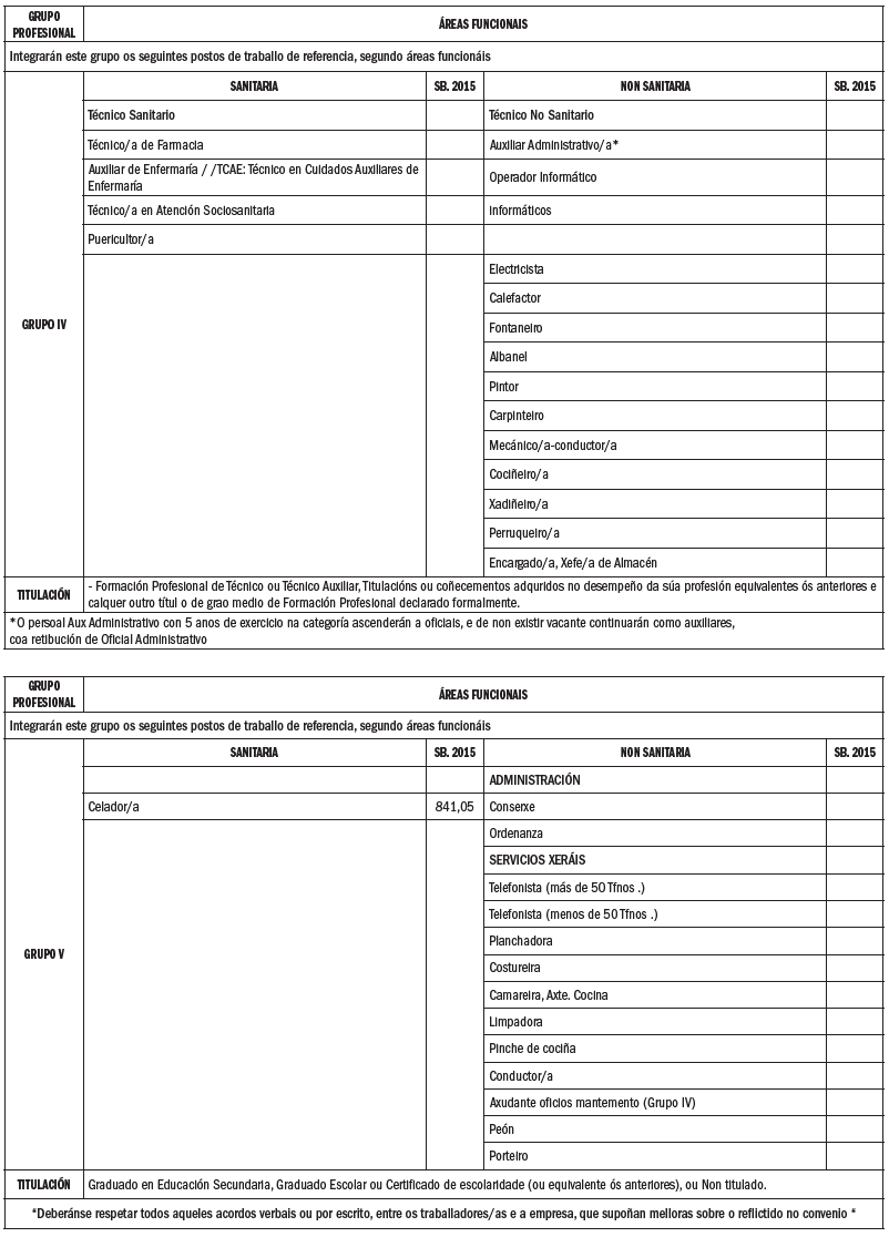 O persoal a que se refire este convenio será clasificado nos grupos e subgrupos que figuran no anexo I, capitulo I seccion primeira a deste convenio.