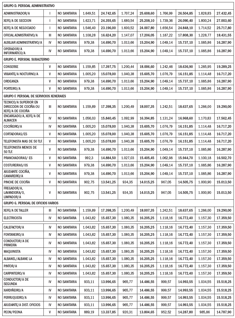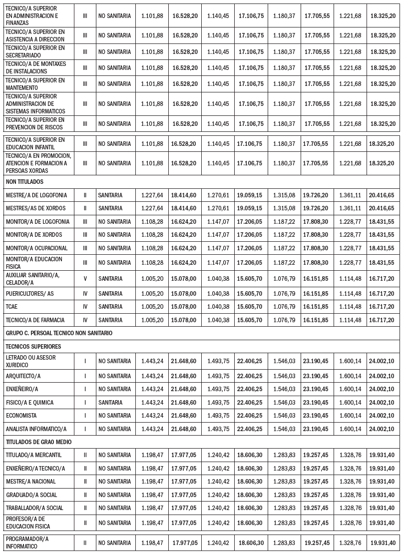 Todas aquelas categorías que non se atopan definidas neste artigo terán as funcións propias da sua titulación e /ou profesión
