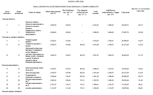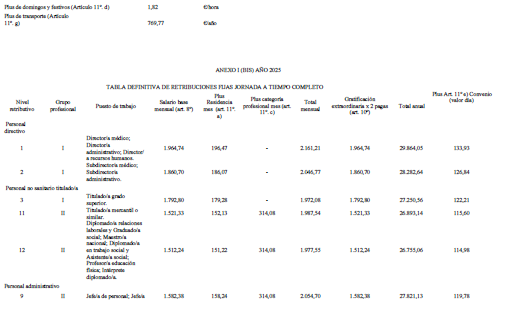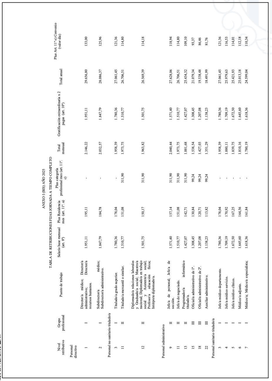 Se adjunta, como anexo I bis, la tabla retributiva definitiva para el año 2025.