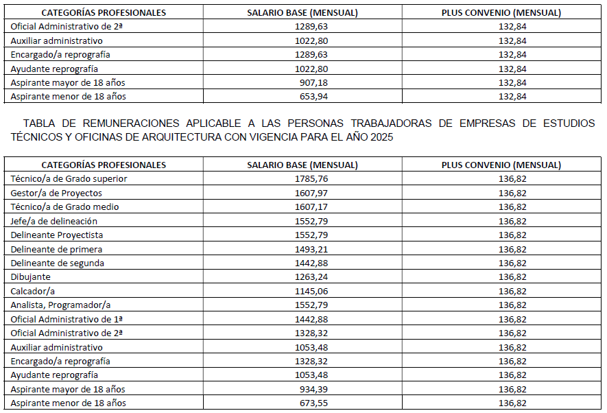 CONVENIO COLECTIVO PROVINCIAL DE TRABAJO PARA ESTUDIOS TÉCNICOS Y OFICINAS DE ARQUITECTURA Y OFICINAS Y DESPACHOS EN GENERAL 2022-2025.