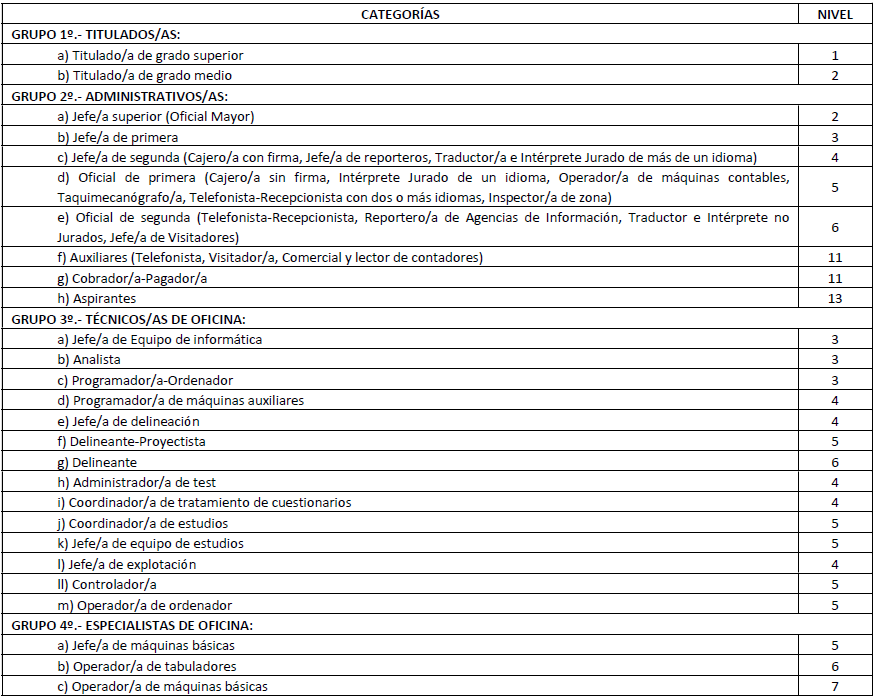 GRUPO 3º.- TÉCNICOS/AS DE OFICINA: