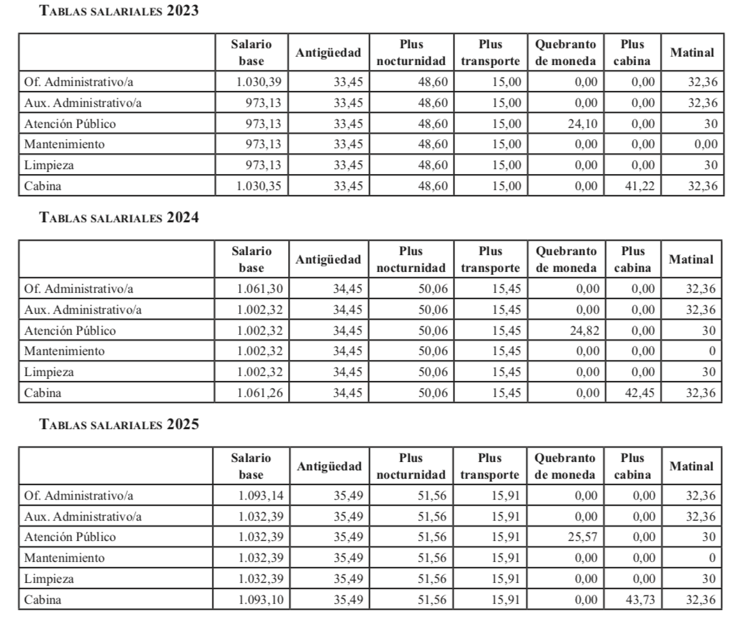 – Para el año 2025 y con efectos desde el 1 de enero de 2025 se establece un incremento del 3 % sobre todos los conceptos económicos para cada una de las categorías profesionales calculado sobre las tablas de 2024.