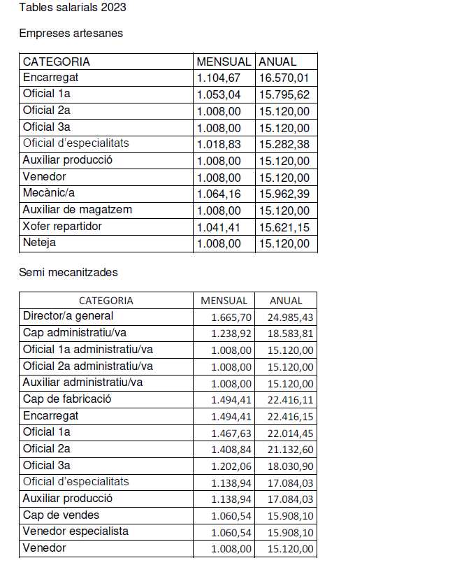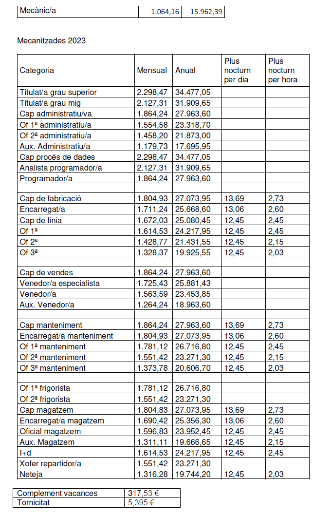 Aquests increments per a empreses mecanitzades seran amb caràcter retroactiu a l’1 de gener del 2023.