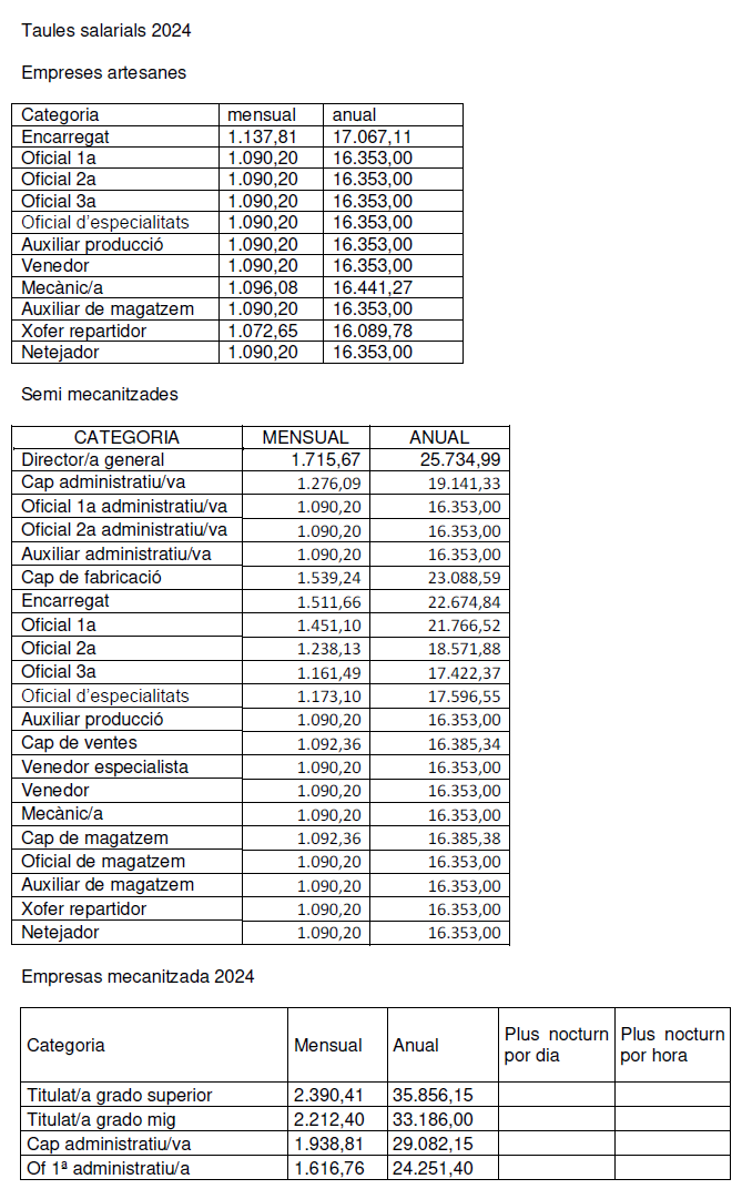 Per l’any 2024, s’incrementarà un 3% sobre les tables de 2023.