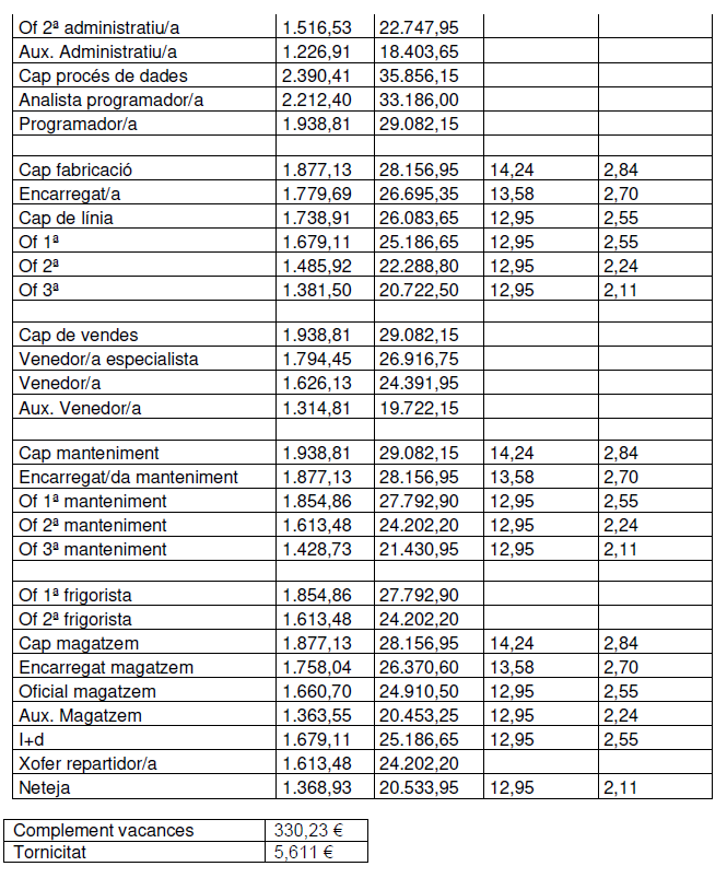 Aquesta correspondència quedarà reflectida en la següent classificació i al document Annex1, taules salarials.