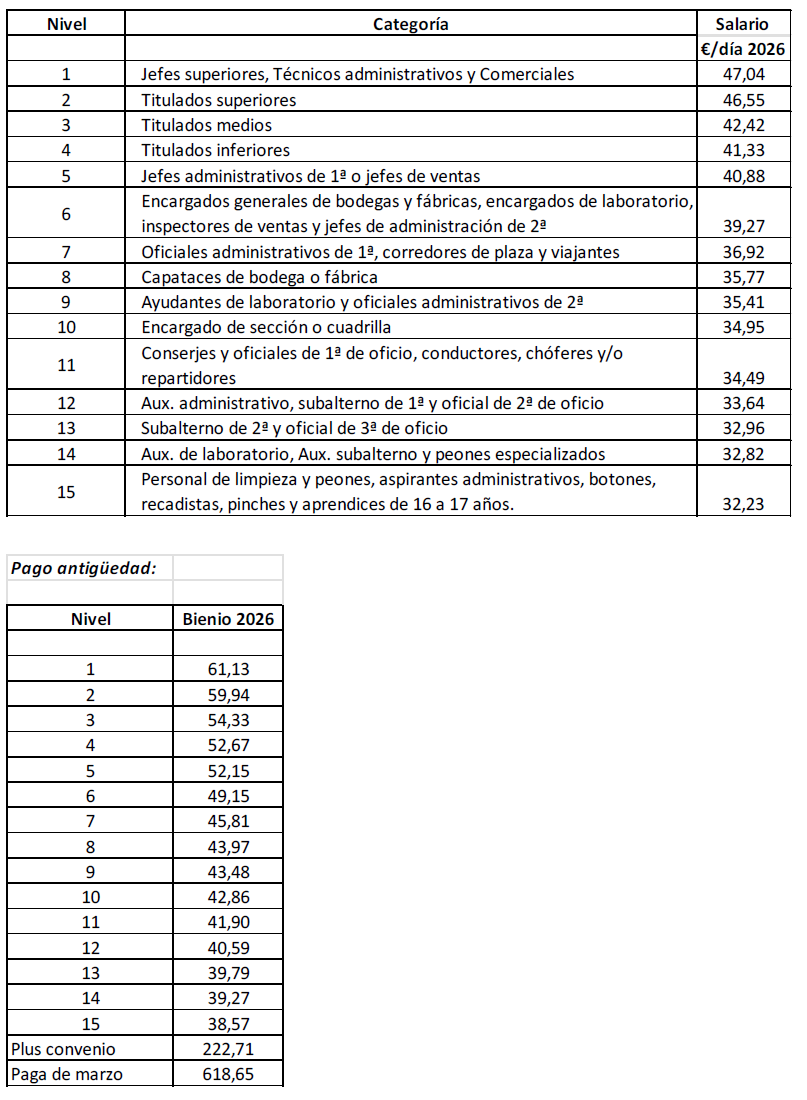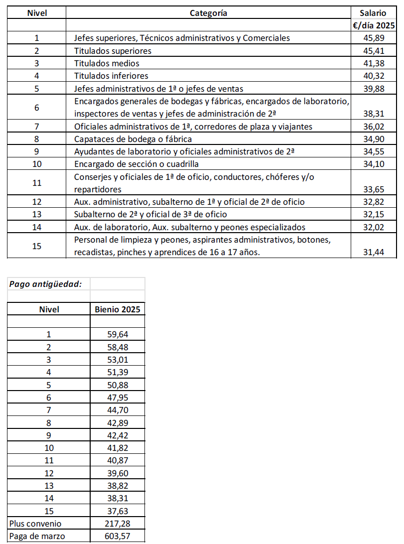 a) Salario base que se especifica en el anexo para cada una de las categorías o grupos profesionales.