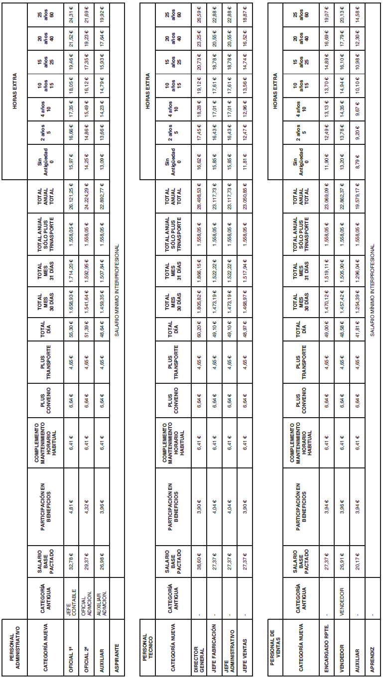 Tercera.-Todas las empresas reguladas por el presente Convenio se regirán por la Tabla Salarial Anexa, habiendo desaparecido, desde el 1 de Enero de 2002, las anteriores denominaciones de «Mecanizadas», «Semimecanizadas» y de «Rendimiento».