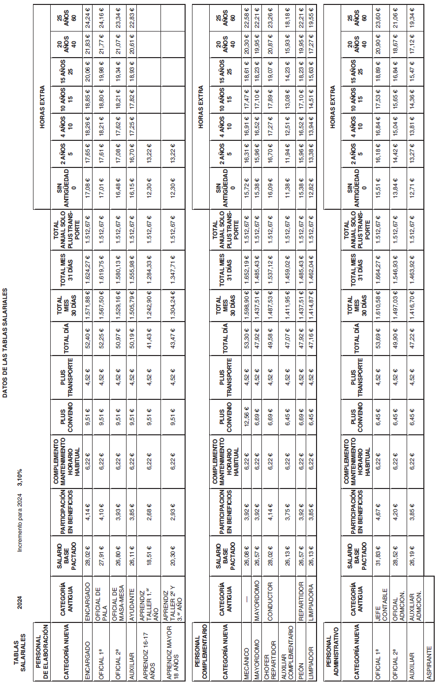 TABLAS SALARIALES 2024. Incremento para 2024 3,10%.