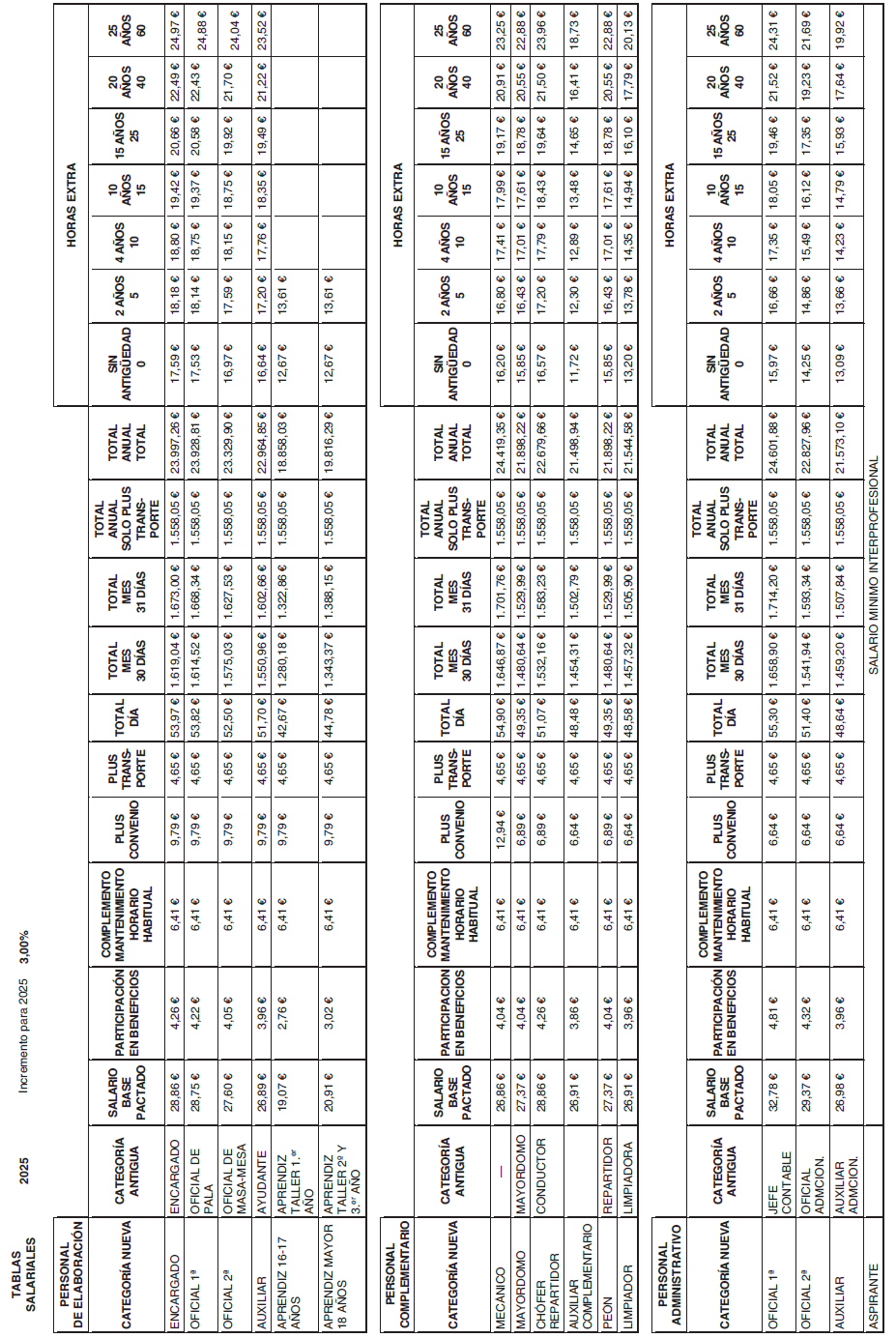 TABLAS SALARIALES 2025. Incremento para 2025 3,00%.