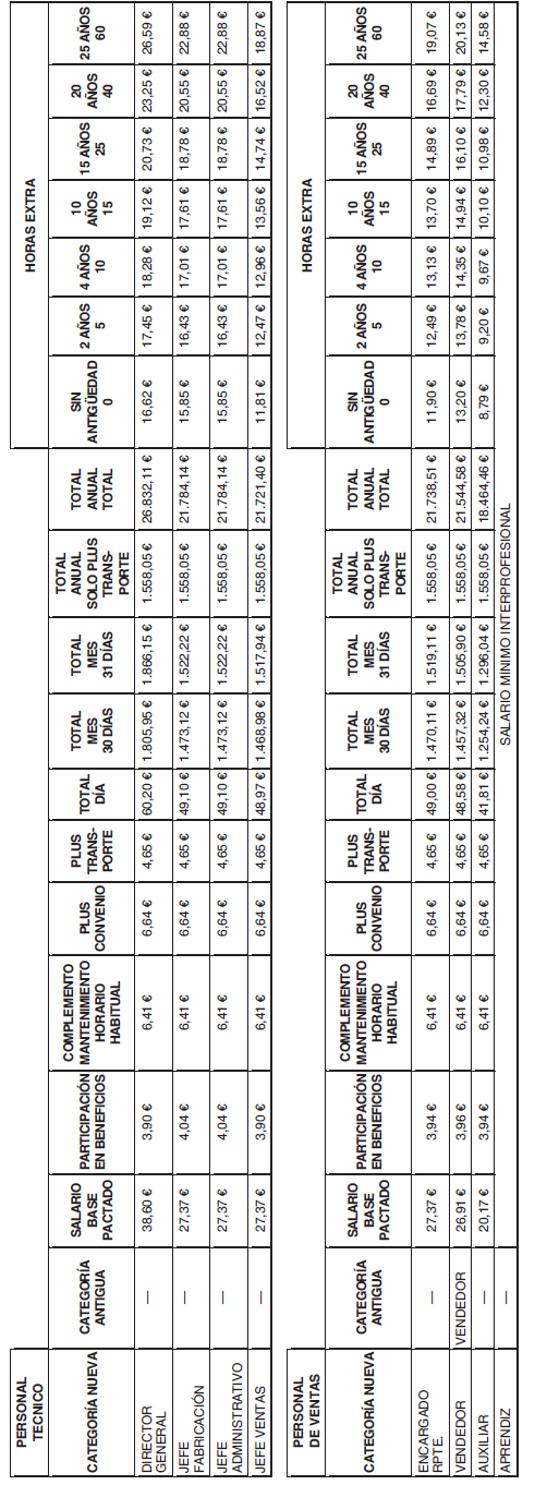 Que, revisadas las tablas salariales por las partes, hemos comprobado que el salario bruto anual recogido en la publicación del convenio colectivo de fecha 21/09/2024 no se corresponde con el salario bruto anual adecuada, por lo que se procede mediante el presente acuerdo a determinar las cuantías adecuadas, siendo estas las tablas salariales correctas Se autoriza a Carlos Paraíso Pareja, a proceder a los trámites necesarios de registro, depósito y publicación de esta modificación convenio colectivo vía telemática ante el REGCON.