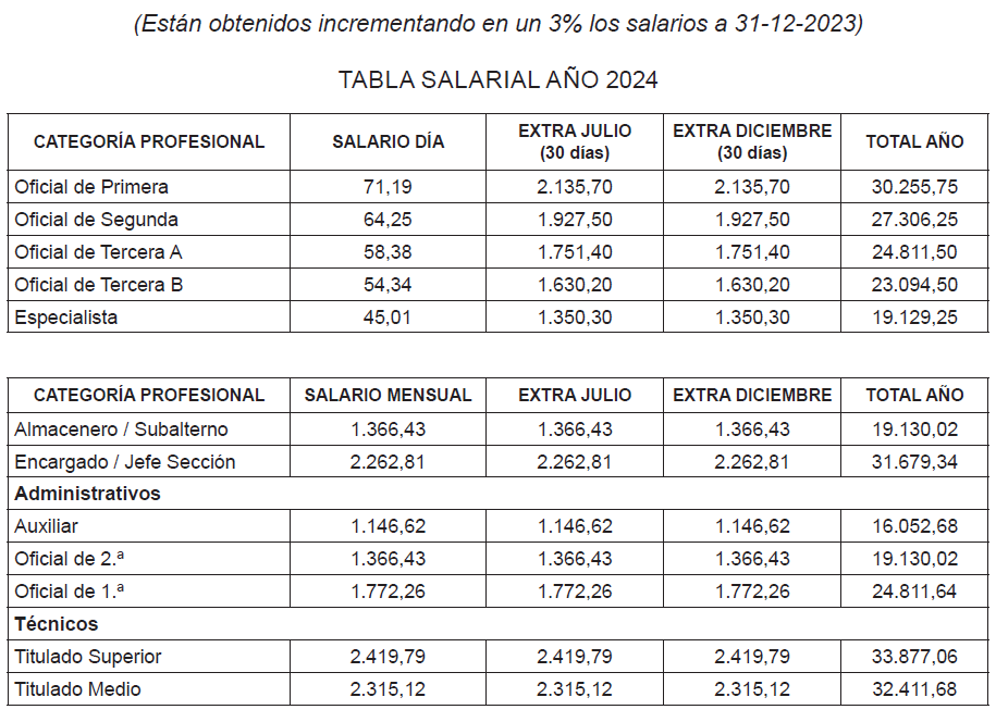 ANEXO II.- TABLA SALARIAL AÑO 2024