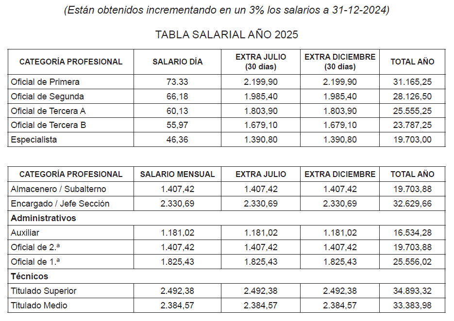 ANEXO III.- TABLA SALARIAL AÑO 2025