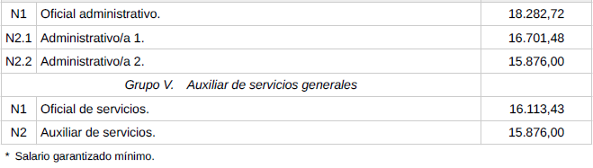 Grupo IV. Administración: Se incluyen en este grupo los perfiles profesionales destinados a la ejecución de funciones administrativas básicas, que se realizan bajo instrucciones precisas o mediante aplicación de procedimientos reglados.