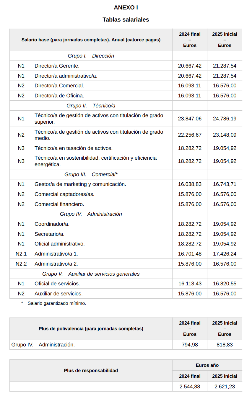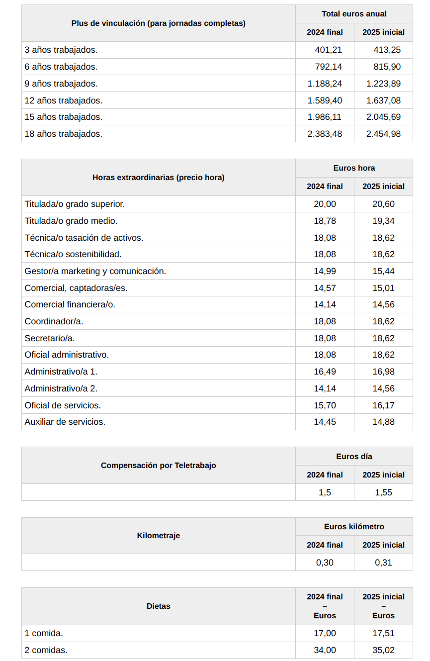 La Comisión Paritaria en aplicación del artículo 28 y disposición adicional cuarta del Convenio elabora las Tablas Salariales iniciales de 2025, incrementando un 3 % sobre las Tablas salariales definitivas de 2024, que se adjuntan a la presente Acta como anexo I.