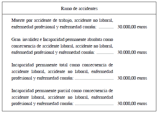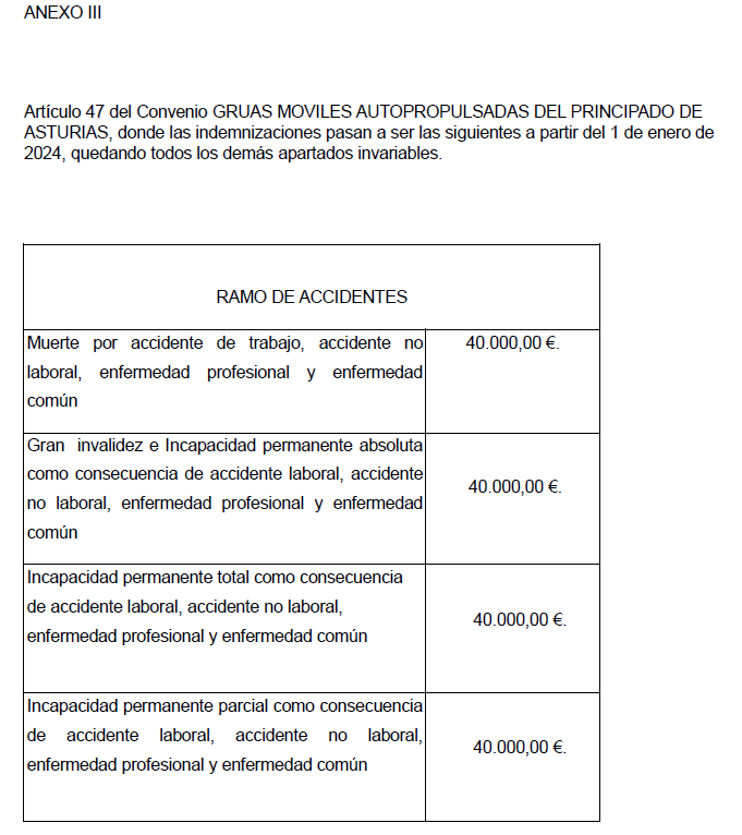 2.º-Actualización de las indemnizaciones por muerte e invalidez por accidente laboral, enfermedad profesional y enfermedad común, artículo 47 del convenio colectivo, de acuerdo al anexo III, a esta acta.