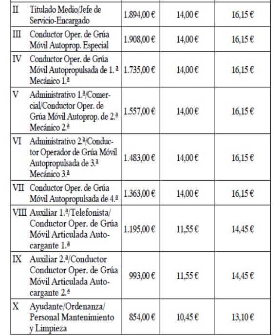 1.º-Fijación de las tablas salariales provisionales para el año 2024, de acuerdo al anexo I, que se adjunta a esta acta. Se hace constar que las referidas tablas salariales, de conformidad con lo previsto en el artículo 37 del Convenio Colectivo, se han calculado sobre las tablas salariales del ejercicio 2023, que se adjuntan como anexo II a esta acta. Las referidas tablas salariales del ejercicio 2023 lo son con efectos del uno de enero al treinta y uno de diciembre de dicho ejercicio.