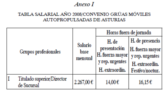 Visto el acta de la Comisión Paritaria del Convenio colectivo de sector Grúas Móviles Autopropulsadas de Asturias (expediente C-034/2007 código 33004255012007), recibido a través de medios electrónicos ante el Registro de convenios colectivos, acuerdos colectivos de trabajo y planes de igualdad del Principado de Asturias el 10 de febrero de 2025, en la que se acuerda la tabla salarial definitiva para el año 2024 y la provisional para el año 2025, y de conformidad con lo dispuesto en el art. 90, números 2 y 3 del Real Decreto Legislativo 2/2015, de 23 de octubre, por el que se aprueba el texto refundido de la Ley del Estatuto de los Trabajadores y en el Real Decreto 713/2010, de 28 de mayo, sobre registro y depósito de convenios colectivos, acuerdos colectivos de trabajo y planes de igualdad, en uso de las facultades conferidas por Resolución de 3 de octubre de 2023, por la que se delegan competencias del titular de la Consejería de Ciencia, Empresas, Formación y Empleo en la persona titular de la Dirección General de Empleo y Asuntos Laborales, por la presente,