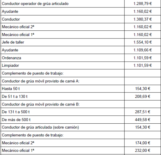 Conductor de grúa articulada (sobre camión): 147,03 euros