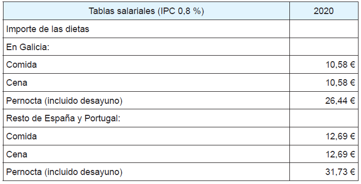 Primero. Las tablas salariales del año 2020 se actualizarán según lo previsto en el convenio colectivo de aplicación al sector, con un incremento de 0,8 %, que se corresponde con incremento del IPC real del año 2019. El incremento tendrá efectos a partir del 1.1.2020.