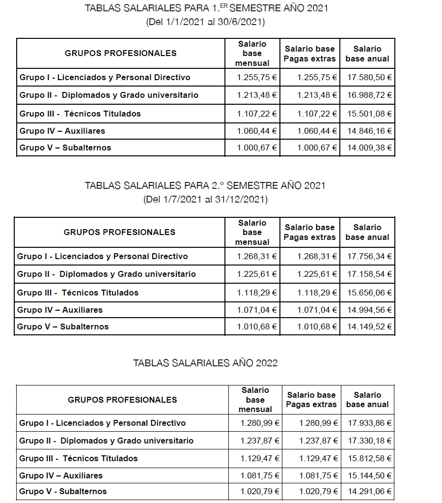 Es la retribución del trabajador fijada por unidad de tiempo, cuya cuantía para los años 2021 (1.º semestre y 2.º semestre), 2022, 2023, 2024 y 2025 se especifica en las tablas salariales anexas que forman parte integrante de este convenio.