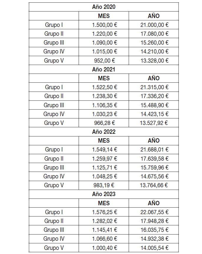 El resultado de aplicar los incrementos pactados se refleja en las tablas salariales para cada uno de los años de vigencia del convenio que se incorporan como Anexo I.