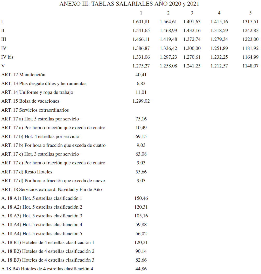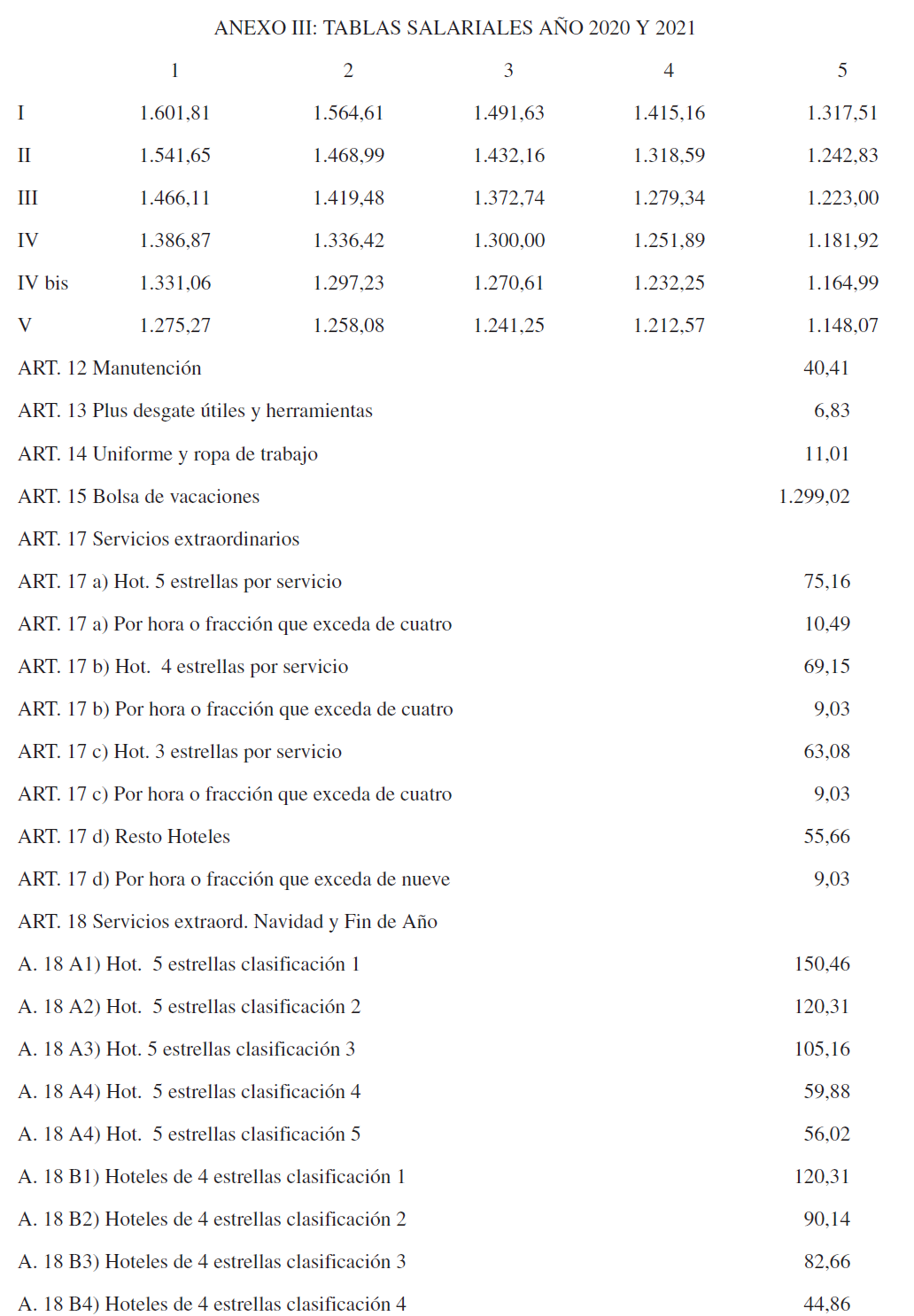 1º) Para los años 2020 y 2021, los salarios no experimentarán variación respecto de los vigentes a 31 de diciembre de 2019.