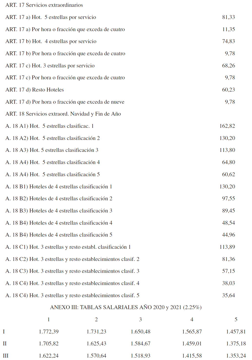 Los servicios de banquetes, bodas, bautizos que sean realizados por el personal de cocina y comedor ajenos al establecimiento, se regirán por las condiciones reflejadas en el Anexo III.