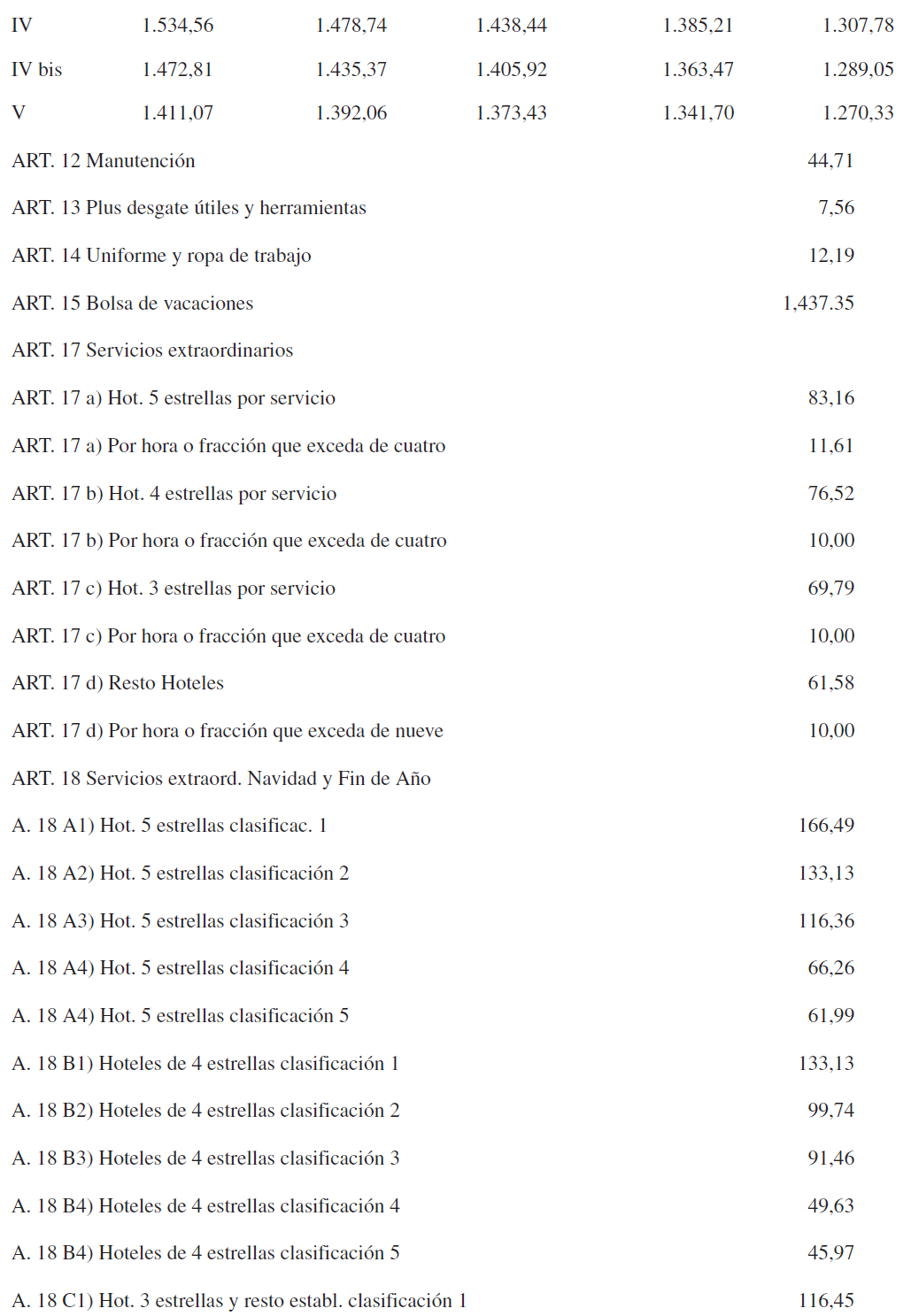 Este complemento de manutención no corresponde al personal de apartamentos, bungalows, hotelesresidencias, hostales-residencias, residenciasapartamentos, cafés-bares, bares americanos, whiskerías, cervecerías, chocolaterías, heladerías, salas de fiesta, discotecas, salas de baile, salas de té, tablaos flamencos, tabernas que no sirvan comidas, casinos, billares, salones de recreo y todos otros tipos de empresas que pudieran existir y no presten servicio de comida a su clientela en el mismo centro de trabajo, de acuerdo con la legislación administrativa turística.
