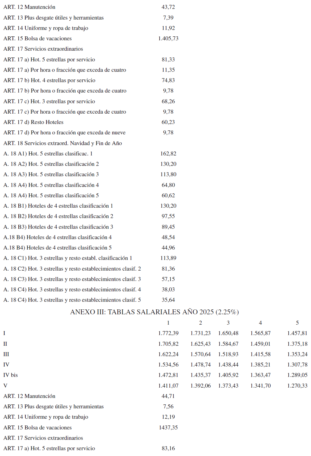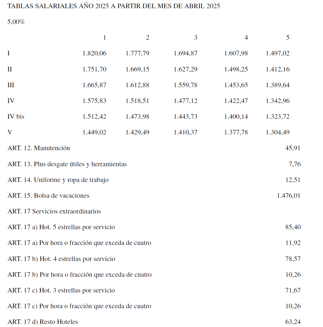 5º) Para el año 2025, los salarios se incrementarán en un 2,25% sobre los establecidos para 2024.
