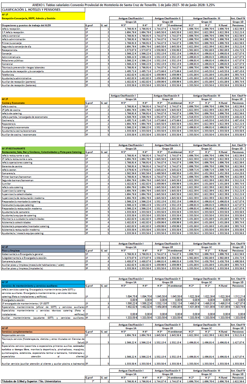 CONVENIO COLECTIVO DEL SECTOR DE HOSTELERÍA DE SANTA CRUZ DE TENERIFE 2025 – 2028.
