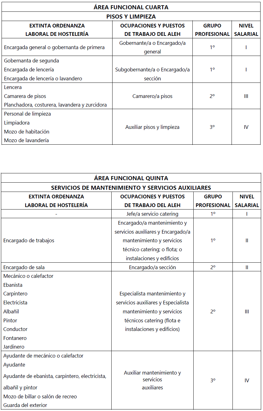 2.- Al personal que desarrolle su trabajo, total o parcialmente, en los grupos y categorías profesionales de las áreas funcionales primera, segunda, tercera y cuarta del vigente Acuerdo Laboral Estatal de Hostelería, que sean o estén contratados por cualquier empresa que preste sus servicios a las empresas recogidas en los ámbitos funcional y personal del presente convenio, a partir del 1 de enero de 2022 les serán de aplicación las condiciones laborales y de empleo esenciales previstas en el presente Convenio Colectivo o el que fuese de aplicación en la empresa principal o, en su caso, las que tendrían si fueran personas trabajadoras contratadas directamente por dicha empresa principal.