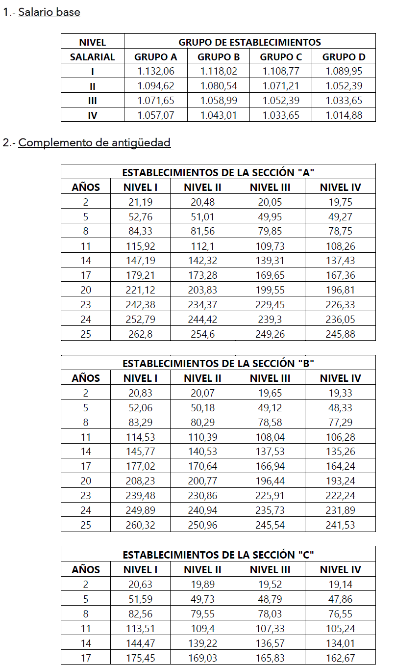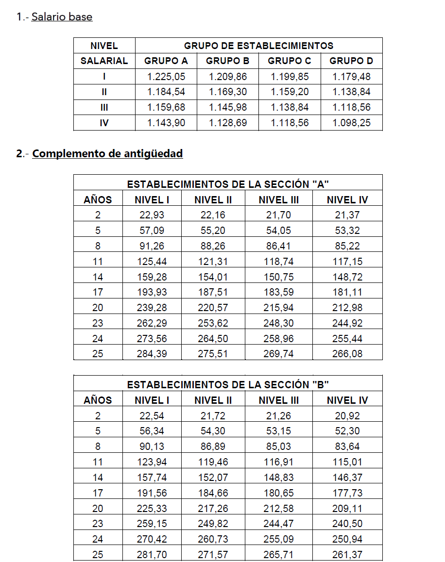 ACTA DE ACTUALIZACION DE TABLAS SALARIALES DEL CONVENIO PROVINCIAL DE HOSTELERÍA DE TOLEDO