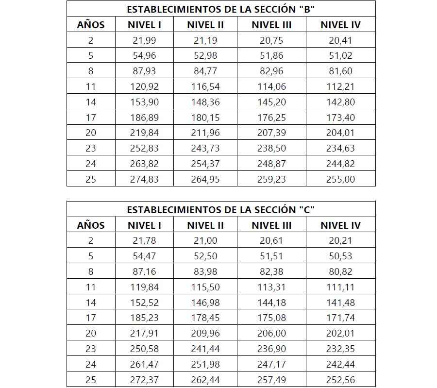 TERCERO. Aprobar de manera definitiva las tablas provisionales para el año 2025 publicadas en el «Boletín Oficial» de la provincia de Toledo núm. 54, de 20 de marzo de 2025, con vigencia desde el 1 de enero al 30 de junio de 2025.