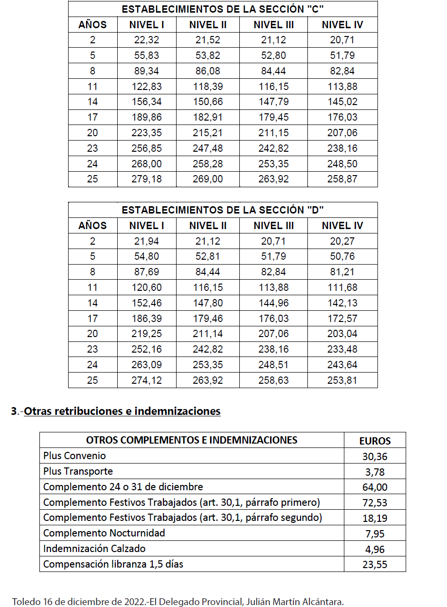 El precitado convenio colectivo publicado en el «Boletín Oficial» de la provincia de Toledo nº 1, de 2 de enero de 2023, en su artículo 38.bis establece que: