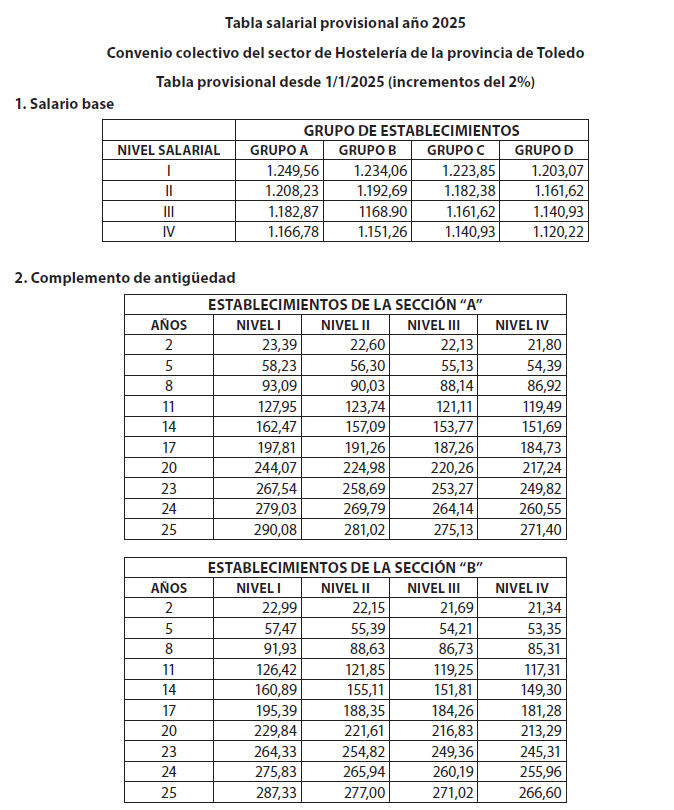 CONVENIO COLECTIVO PROVINCIAL DE HOSTELERÍA DE TOLEDO.