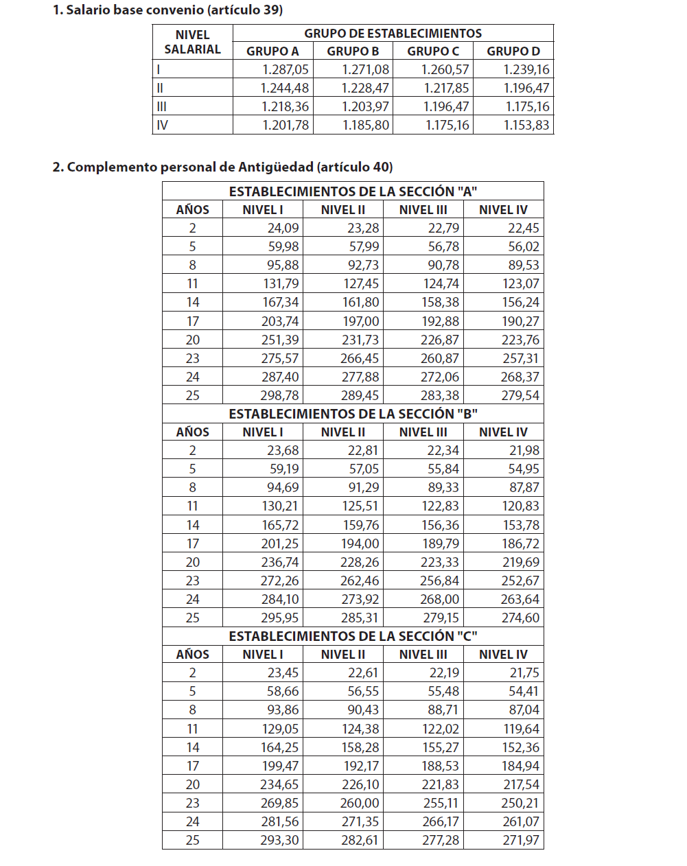 SEGUNDO. Modificar el contenido del artículo 34.1.c) del citado convenio colectivo: