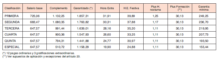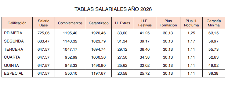 El importe mensual de esta garantía mínima figura en columna aparte en la Tabla de Salarios.